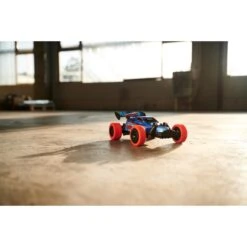 Das Spielzeugauto ist mit einer Funksteuerung (2-Kanal FS, 2,4GHz) ausgestattet. Sie liegt gut in der Hand und verwandelt jeden Ort in eine Rennstrecke, die man sonst so nicht zu sehen bekommt. Der charmante Geländebuggy erreicht eine Maximalgeschwindigkeit von bis zu 9 km/h, die dank des Turbo Boosts schnell erreicht werden können. Ideal für spannende Wettkämpfe!